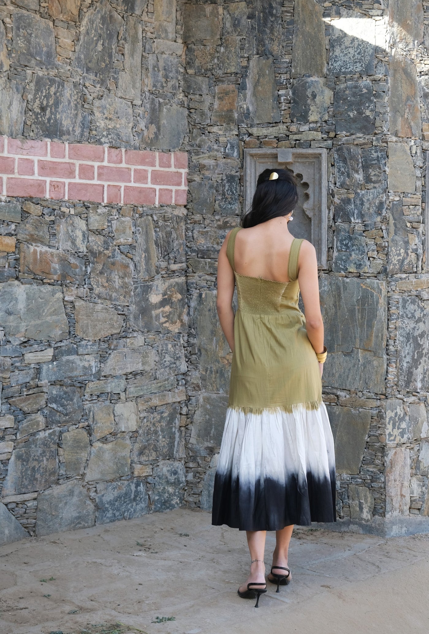 The Heer Dress makes its debut this season with her form flattering silhouette and twirling Skirt. Crafted from luxurious organic cotton fabric Heer is perfectly suited for all the occasions and effortlessly reads both fun and put together.