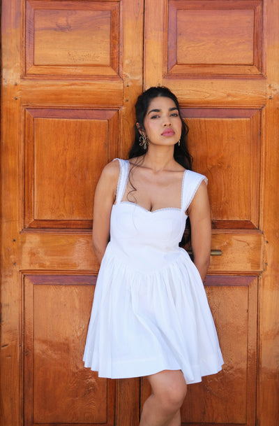 Dress that Brings all Eyes on You!                                                                                                                 Inspired by vintage silhouette in our personal archive, the Tara is the voluminous mini crafted from lightweight organic cotton and featuring a delicate bustier bodice and gently puffed sleeves, with an easy skirt that can't wait to twirl away the day.